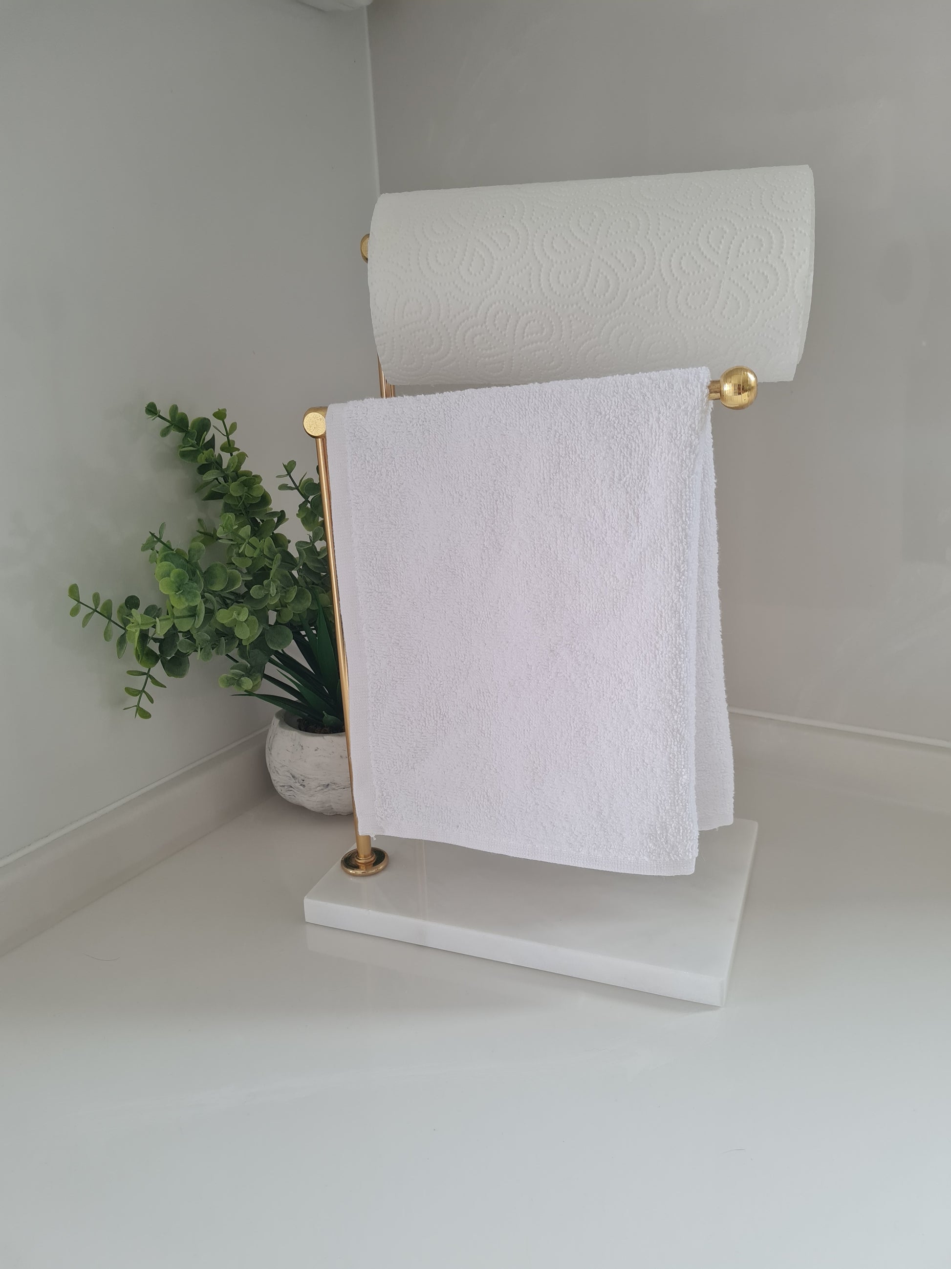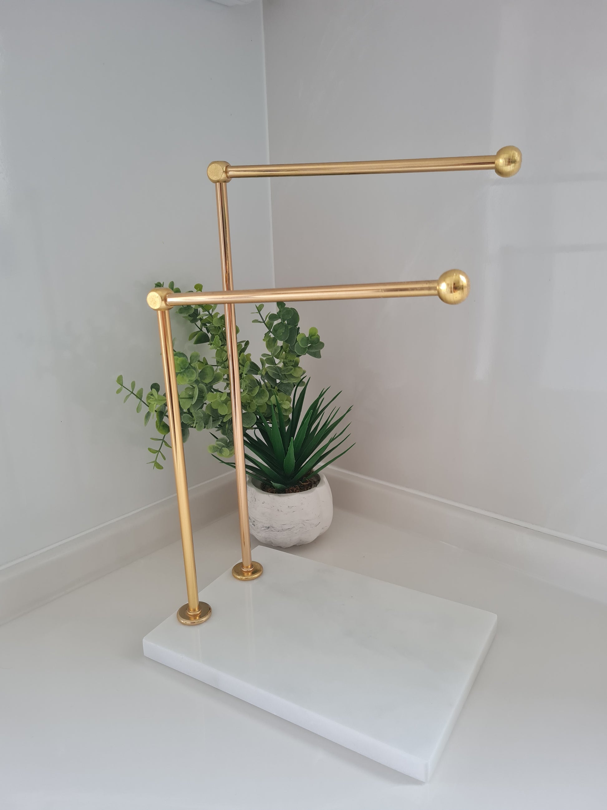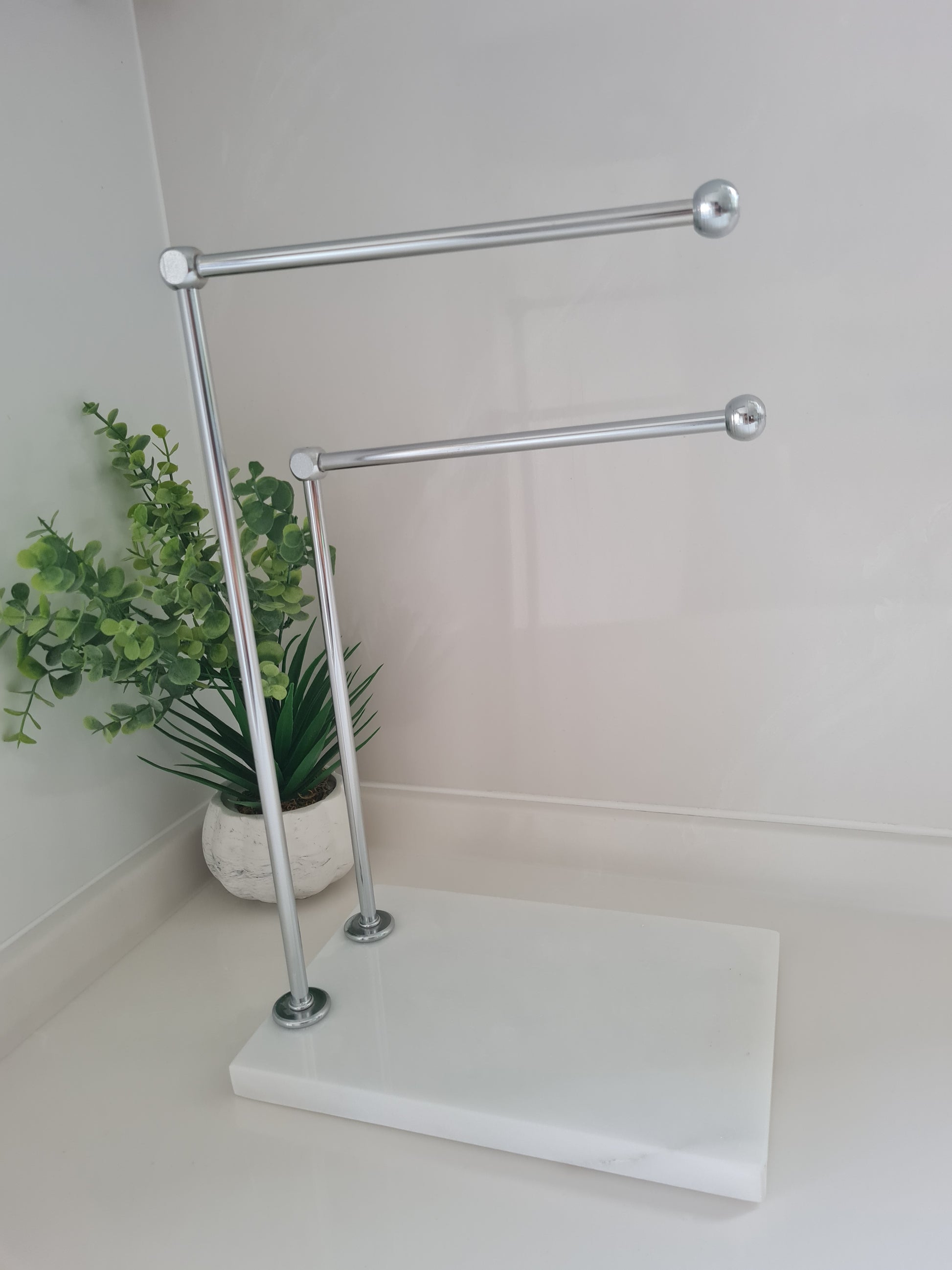 2er Handtuchhalter aus Marmor mit Metallhalterung
