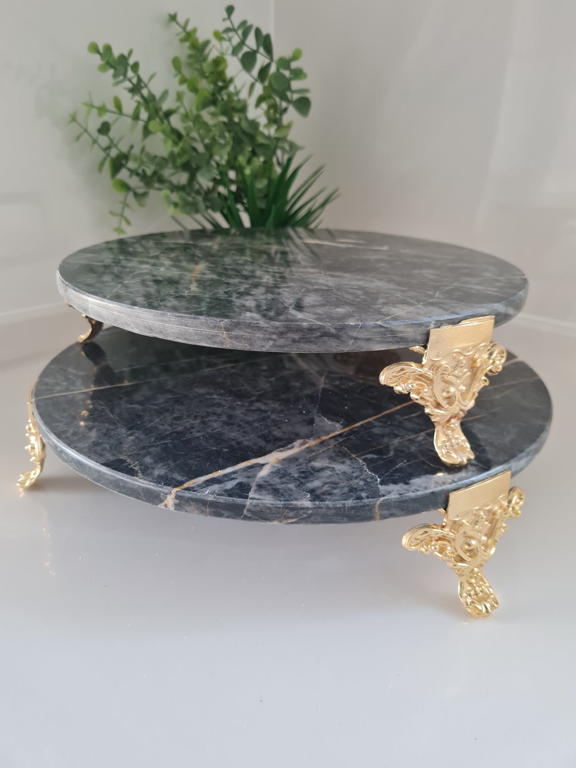 2er Set Marmor Tortenplatte mit 4 Metallfüßchen