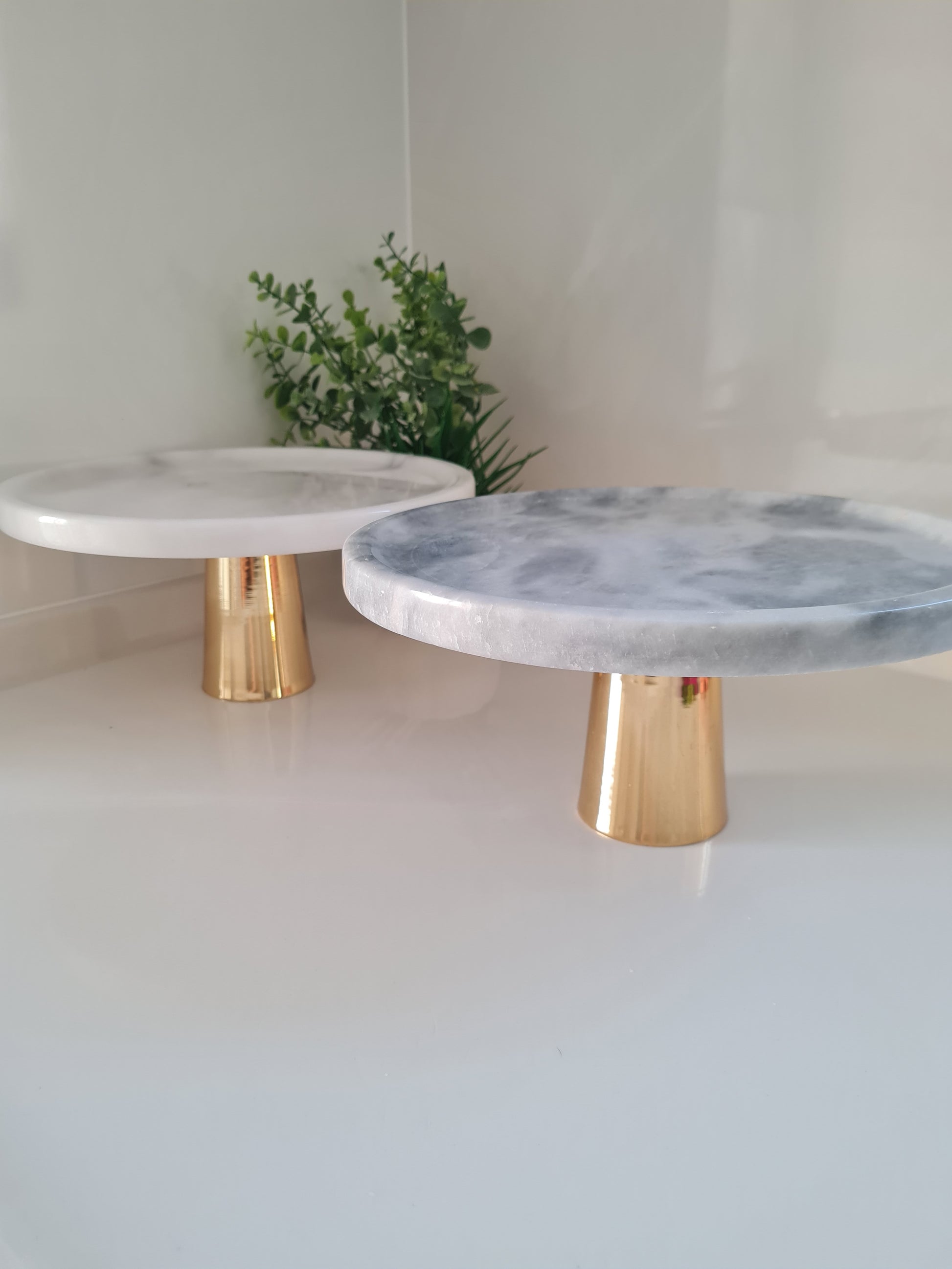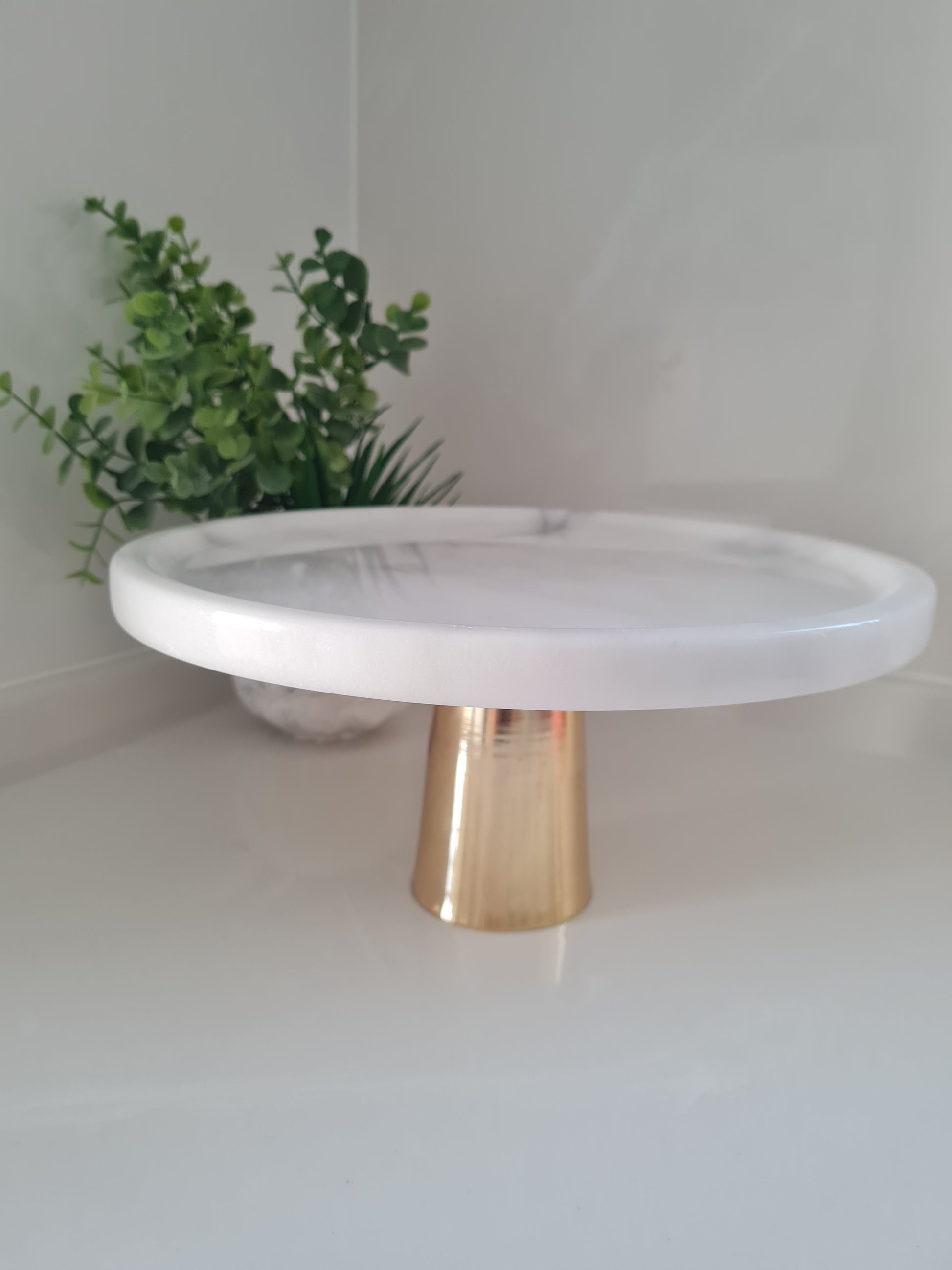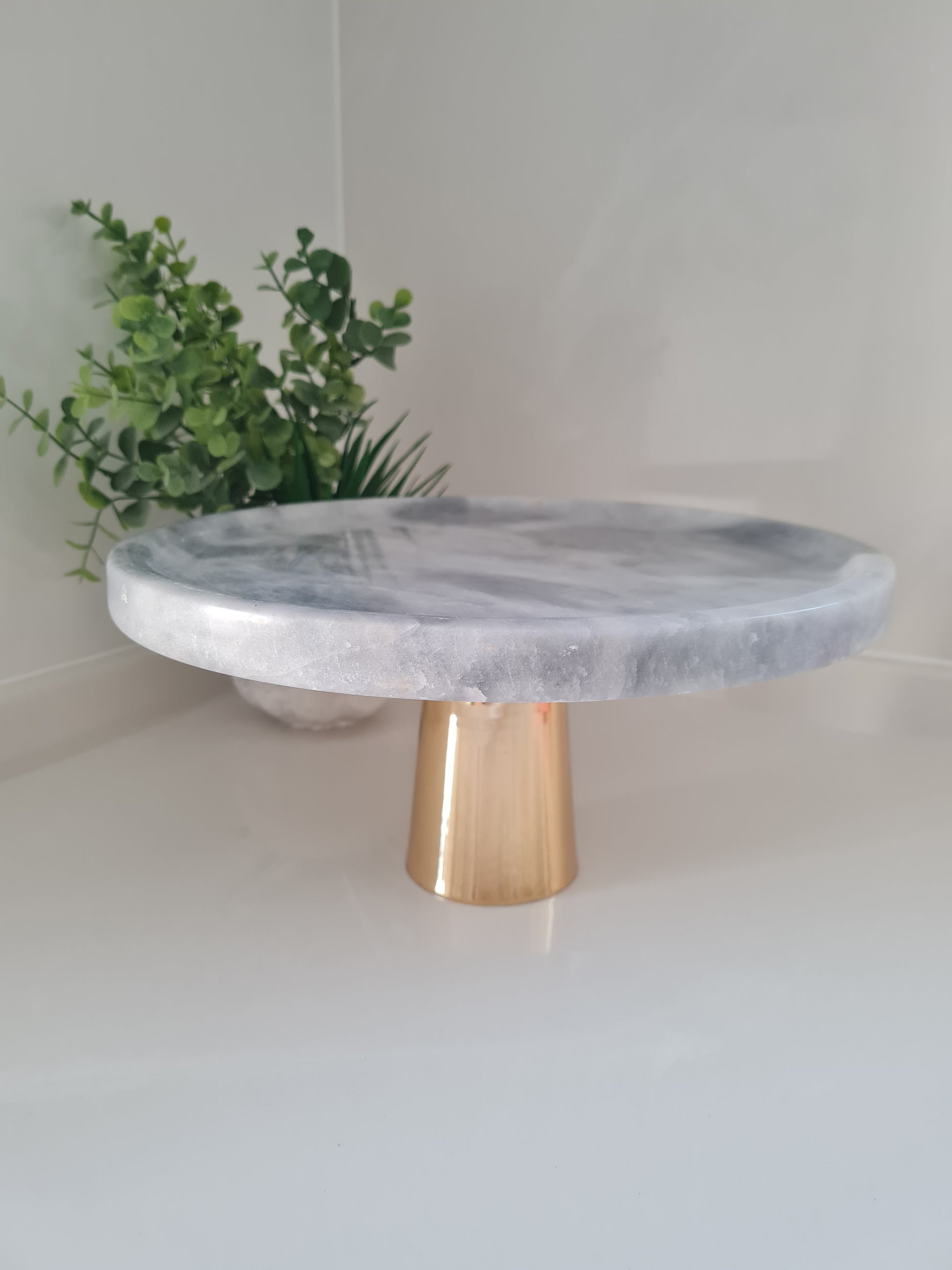 Marmor Dessertplatte mit leichten Rand und Metall Zilinderfuß
