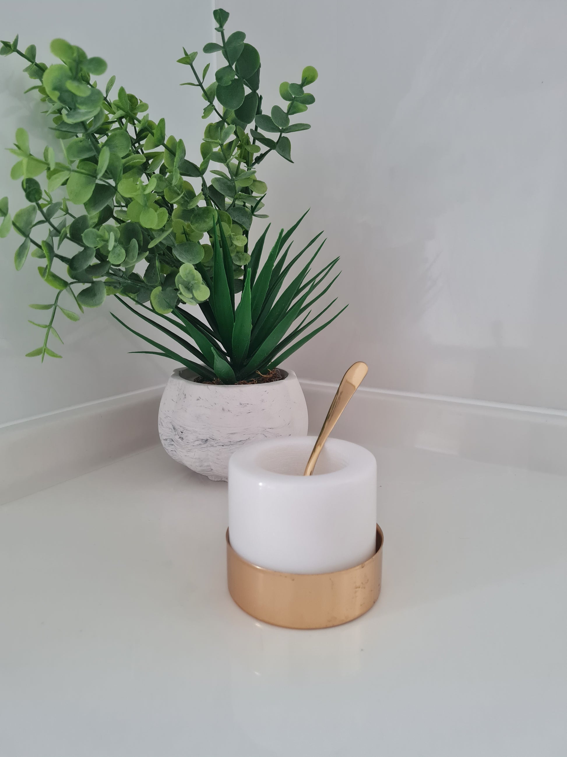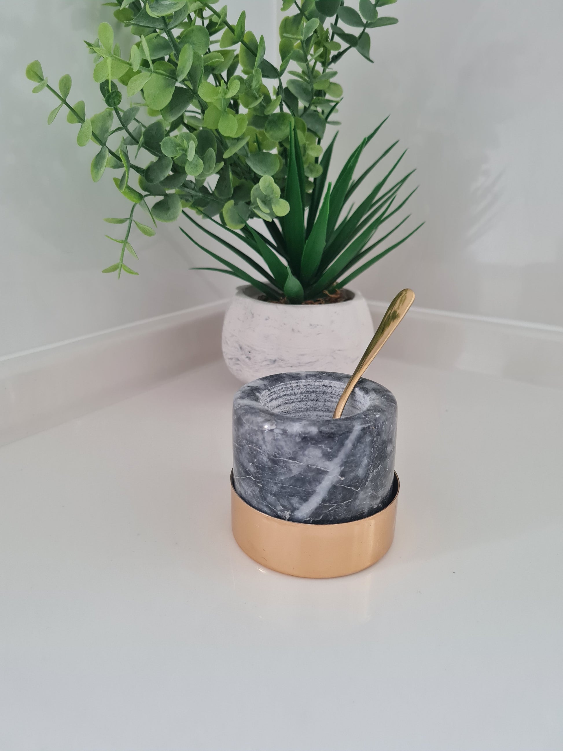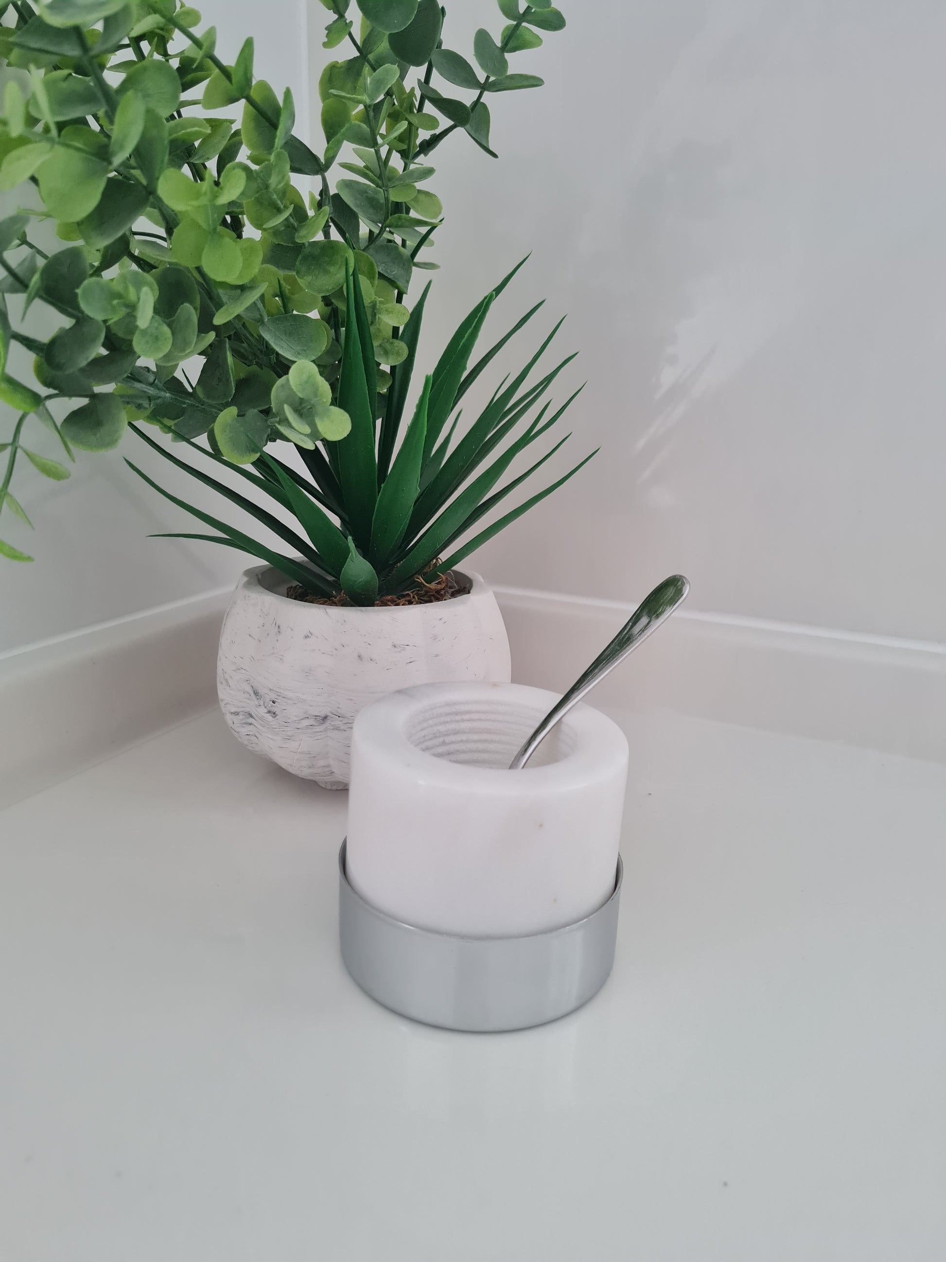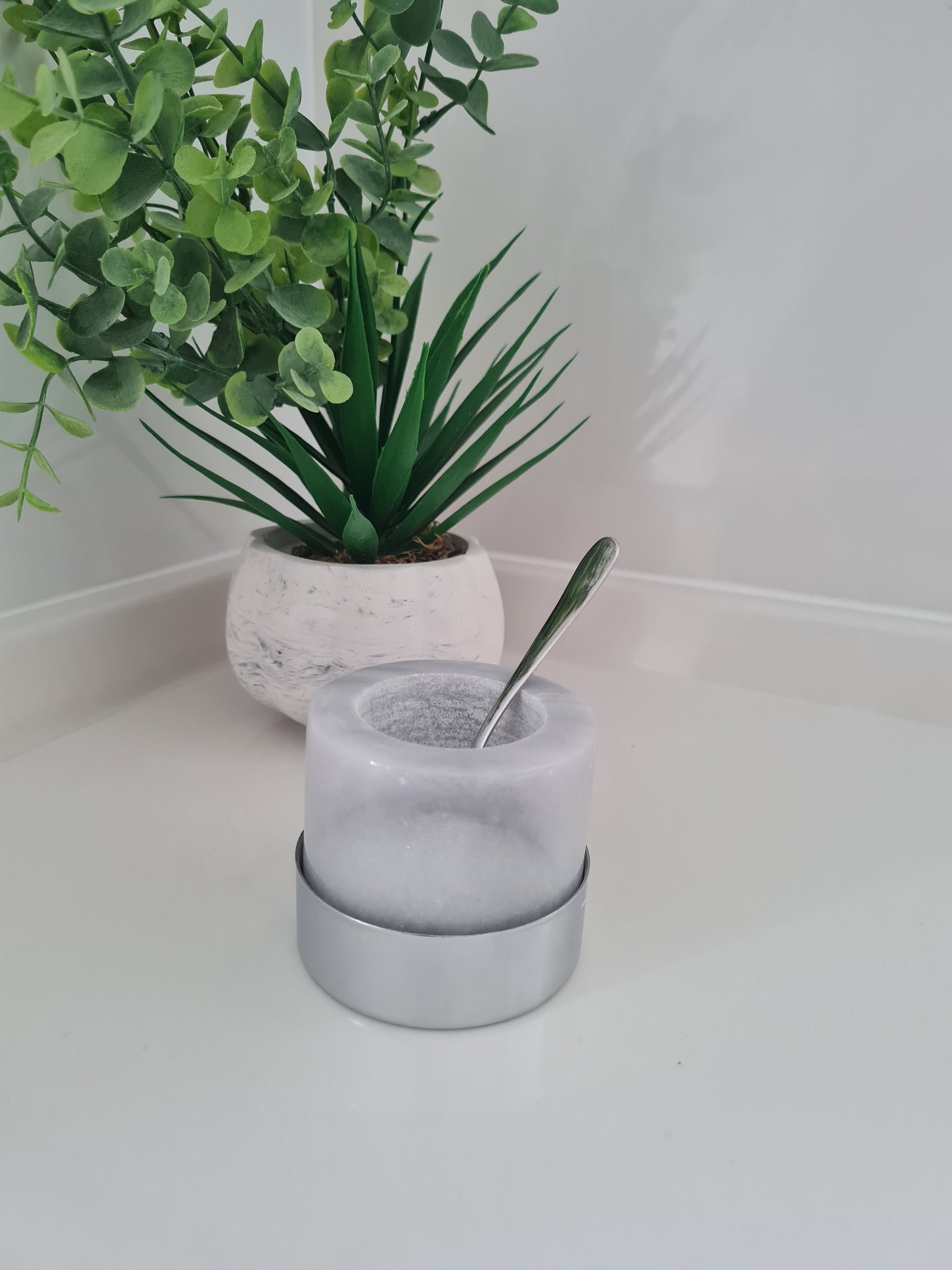 2er Set Marmor Gewürzschale mit Metallhalter und Löffel